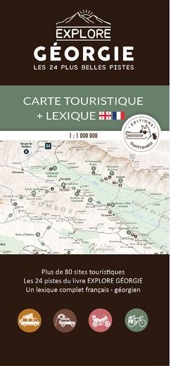 Carte touristique de la Géorgie au format A2 pliable pour vous aider à préparer et organiser votre voyage dans le Caucase : - Les routes principales et secondaires ainsi que les cols de montagne - Les 24 pistes du livre EXPLORE GEORGIE - Plus de 80 sites touristiques - Un lexique complet français-géorgien. Echelle : 1 / 1 000 000 - Format plié : 21 x 10cm - Format ouvert : 42 x 59,4 (A2) - Papier Polyart résistant à l'eau et indéchirable.