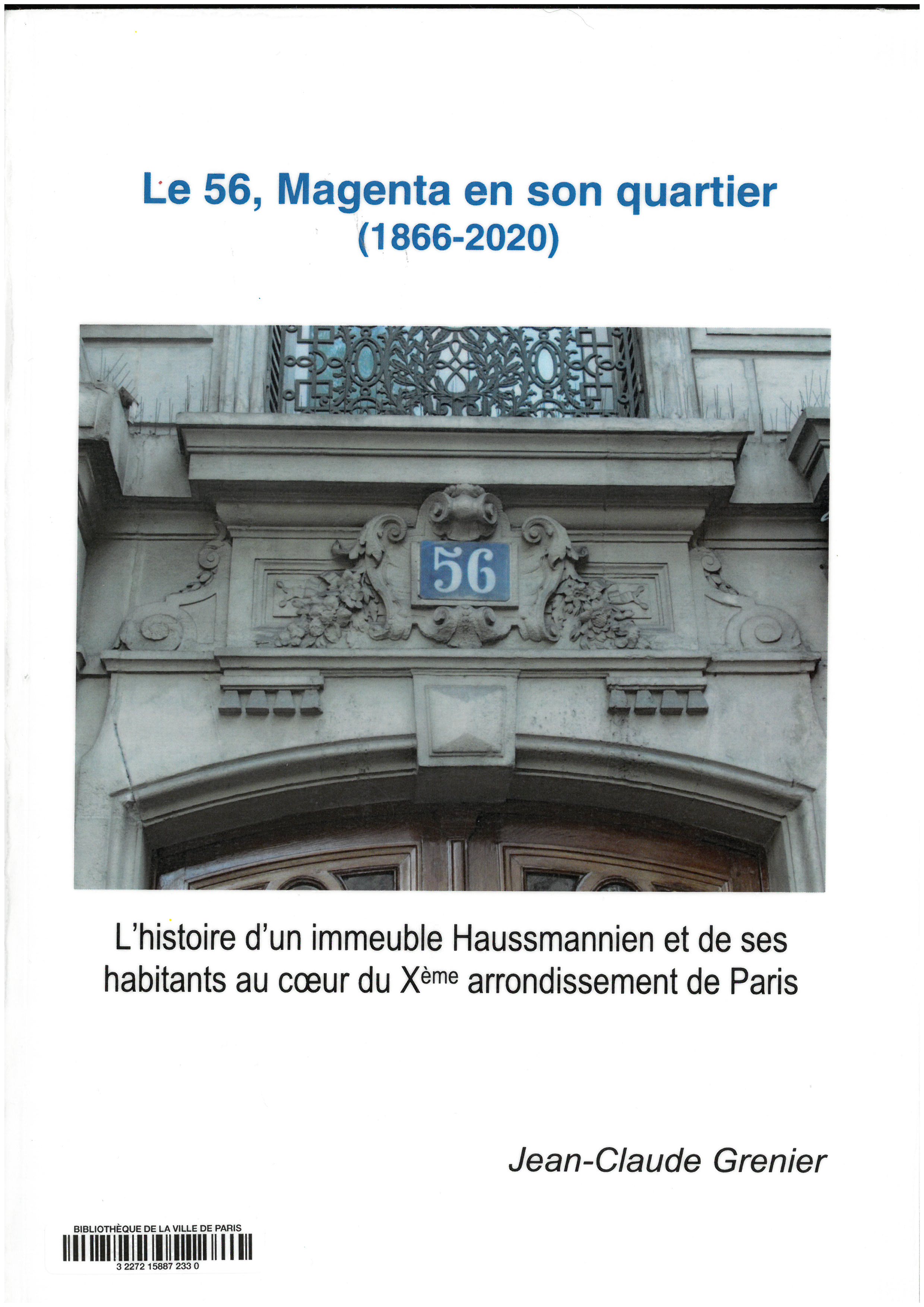 Le 56, Magenta en son quartier, 1866-2020 : histoire d'un immeuble haussmannien et de ses habitants au coeur du Xème arrondissement de Paris