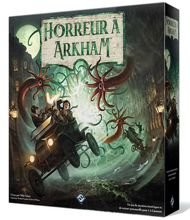 Massachusetts, 1926. La ville d’Arkham vit depuis trop longtemps sur sa paisible île d’ignorance, au cœur des noirs océans de l’infini. Seule une poignée d’investigateurs malchanceux ose plonger dans cet abîme pour combattre les maux antédiluviens qui menacent la réalité depuis chaque recoin de cette bourgade de Nouvelle-Angleterre. Horreur à Arkham est un jeu coopératif alliant mystère et terreur pour un à six joueurs. Inspiré des écrits de H.P. Lovecraft, chaque scénario unique vous mettra dans la peau d’un investigateur d’Arkham qui explore les rues de la ville et œuvre avec ses pairs pour sauver l’humanité d’indicibles horreurs.