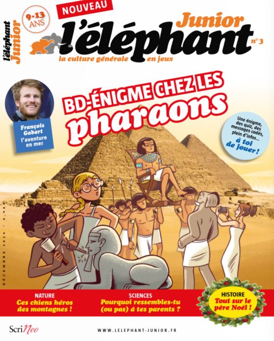 Toute la revue est construite autour du jeu. Parce que c’est un moyen très efficace d’attirer le jeune public à la lecture et une manière formidable de mémoriser une information : le lecteur passe alors en mode actif et son cerveau, mis en éveil, retient mieux. Une grande BD-énigme de 12 pages permet ainsi d’apprendre tout en cherchant des indices !Histoire, sciences, nature, monde, arts, économie… : l’éléphant junior est curieux de tout ! Nous avons aussi l’ambition de faire découvrir à nos jeunes lecteurs les vertus du débat contradictoire, avec notre rubrique « le débat citoyen ».