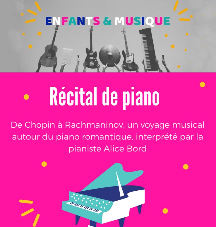 Dans le cadre du cycle Enfants et Musique, retrouvez le récital de piano commenté d’Alice Bord. Au programme ce samedi 28 mai 2022, du piano romantique de Frédéric Chopin à Serge Rachmaninov.