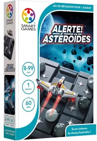 Découvrez le jeu alerte astéroïdes de Smartgames, un jeu de logique où vous devrez réaliser 60 défis à partir de 8 ans pour faire sortir le vaisseau spatial du champs d'astéroïdes.L'espace vous accueille avec tous les dangers qui en découlent... Votre vaisseau spatial doit se sortir d'une situation complexe et vos talents de pilote seront requis pour l'en sauver!Placez le plan de jeu face à vous. Choisissez un défi parmi les 60 proposés et posez les tuiles astéroïdes et vaisseau spatial comme demandé. Faites coulisser les tuiles comme bon vous semble, jusqu'à faire sortir votre vaisseau hors du plateau de jeu par la seule sortie possible face à vous.