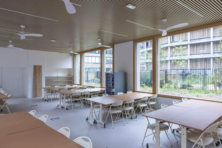 - Un espace de travail calme de 100 m², proposant jusqu’à 50 places assises et des postes informatiques. Ce module sera accessible aux résidents CROUS au-delà des horaires d’ouverture au public.