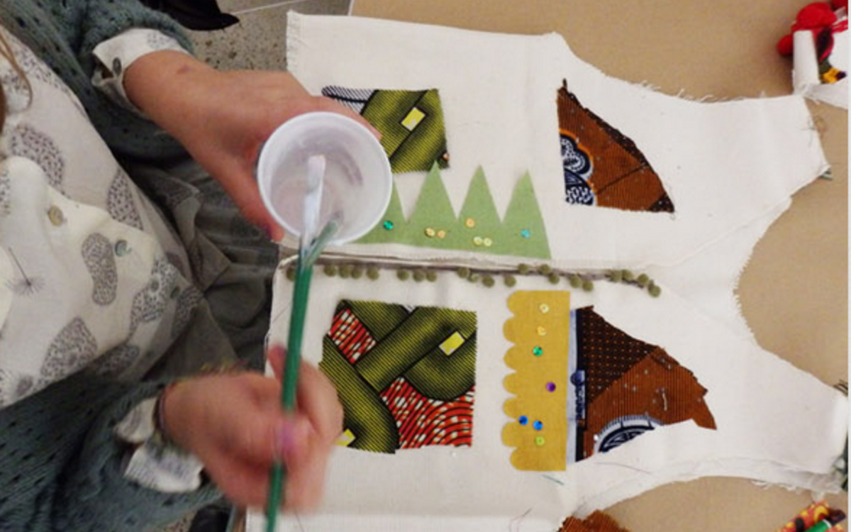 Accompagnés par l'illustratrice Magali Attiogbé, les enfants réalisent un veston de sapeur.