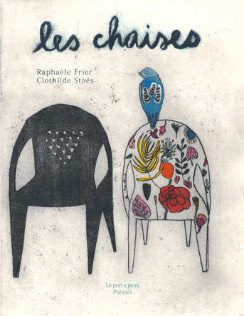 Toutes les chaises sur lesquelles je me suis assise, toutes les chaises qui ont compté, les chaises de ma vie… À partir de ce thème, Raphaële Frier raconte sa première chaise haute comme le toit du monde, la chaise d’attente, les chaises longues qui occultent les courtes, la chaise de cuisine qui côtoie la farine et les odeurs de graille, des chaises tristes comme celle de l’absent ou des chaises loufoques comme les chaises volantes. Et à son tour, Clothilde Staës grave de ses belles gravures réhaussées, les chaises qui dans sa vie ont compté.