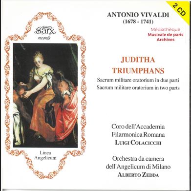 Oralia Dominguez (Juditha), Irène Companeez (Holofernes), Bianca Maria Casani (Vagans)... [et al.], Mezzo-soprano ; Coro dell'accademia filarmonica Romana ; Luigi Colacicchi, chef de choeur ; Orchestra da camera dell'angelicum di Milano ; Alberto Zedda, direction d'orchestre