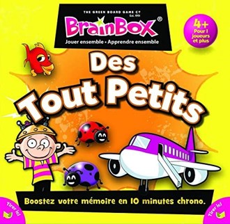 vec BrainBox des Tout Petits, les plus jeunes vont stimuler leur mémoire et exercer leur sens de l'observation.La collection Brainbox est un ensemble de jeux de mémoire dédiés à l'apprentissage et à la stimulation cérébrale.Tous les jeux Brainbox fonctionnent sur le même principe : pendant 10 secondes, le ou les joueurs observent une carte puis la retournent et tentent de répondre à un maximum de questions concernant ce qu'ils ont observé.Les différents niveaux de jeu permettent aux adultes et aux enfants de jouer tous ensemble. Le principe associe amusement et apprentissage tout en douceur.