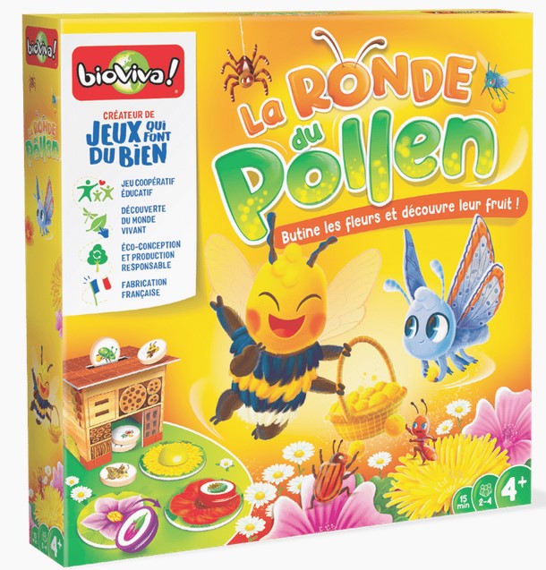 Avec les insectes, les joueurs vont transporter tous les grains de pollen vers les fleurs à polliniser pour leur permettre de donner de jolis fruits. Dans leur voyage, ils devront se méfier des nombreux dangers qui les guettent : oiseau, grenouille, araignée et même les bourrasques de vent vont les mettre au défi ! Mais attention, ce sont surtout les pesticides que les insectes doivent redouter...Observation et motricité seront leurs meilleures alliées pour remporter, tous ensemble, la partie.