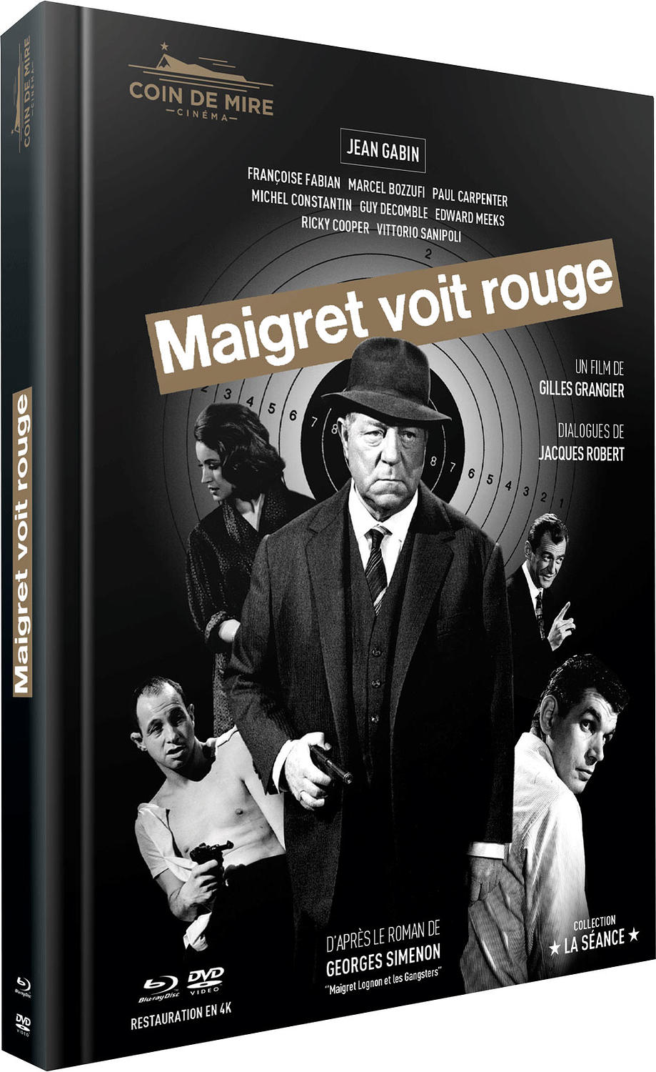 Trois hommes à bord d'une Chevrolet tirent sur un Américain en plein Pigalle. Lorsqu'un témoin s'approche pour secourir la victime, celle-ci a disparu, emportée par une mystérieuse DS blanche. Le commissaire Maigret se rend d'abord à l'ambassade des États-Unis où un diplomate lui conseille de ne pas s'occuper de l'affaire. Il n'en faut pas plus pour que Maigret voit rouge.. Coffret Digibook prestige numéroté et limité à 3.000 exemplaires. Collection LA SEANCE format 142 x 194 mm comprenant 1 BLU RAY et 1 DVD avec inclus 1 livret 24 pages cousu au boitier, reproduisant des archives sur le film, incluse la reproduction de 10 photos d'exploitations cinéma sur papier glacé format 120 x 150 mm rangées dans 2 étuis cartonnés, incluse la reproduction de l'affiche originale en format 215 x 290 mm pliée en 4. Contenu des DVD et BLU RAY : une séance de cinéma complète avec les actualités d'époques, les réclames publicitaires d'époque, un film annonce, et le film complet en haute définition restauré. Les films sont en 24 images/seconde sur le BLU RAY et en 25 images/seconde sur le DVD.. Suppléments : Jounal d'actualités d'époque ; réclames publicitaires d'époque ; bande-annonce