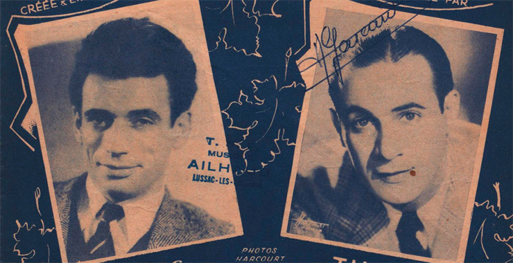 Les feuilles mortes / paroles de Jacques Prévert ; musique de Joseph Kosma ; créée & enregistrée par Yves Montand (disque Odéon) ; enregistrée par Tino Rossi (disque Pathé) ; photos Harcourt (Crédit Ville de Paris/MMP)
