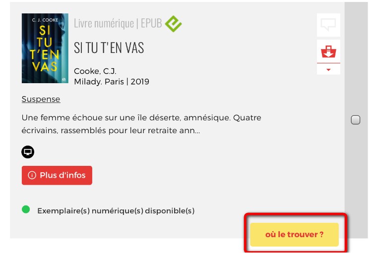 Appuyez sur le bouton Où le trouver ? du livre choisi.
