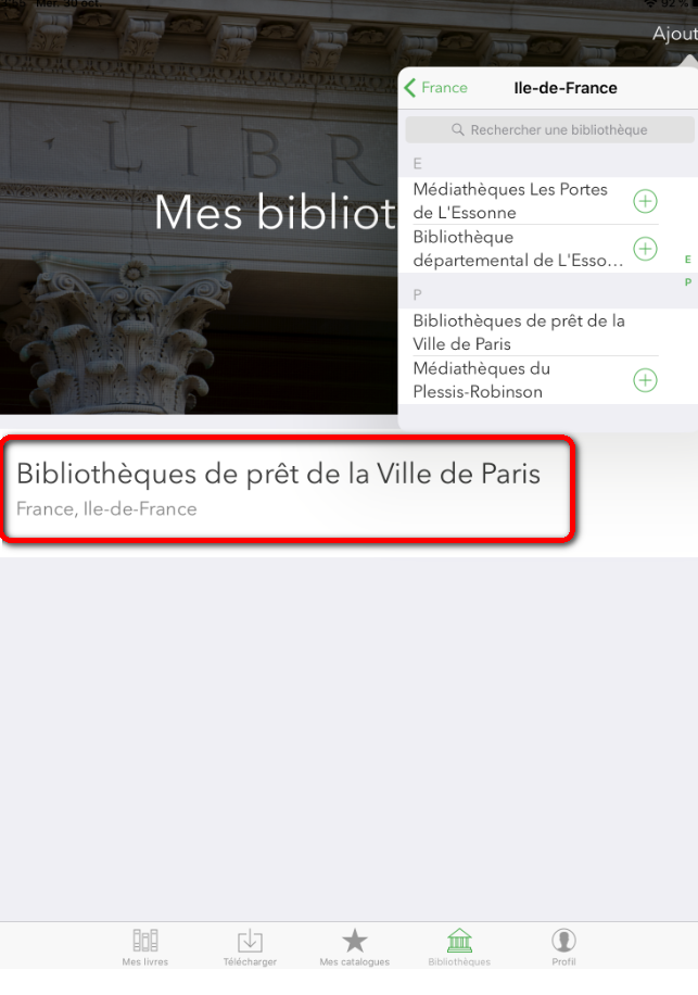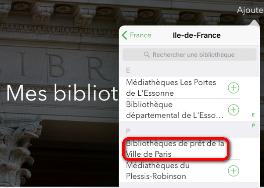 Appuyez sur Bibliothèques de prêt de la Ville de Paris.