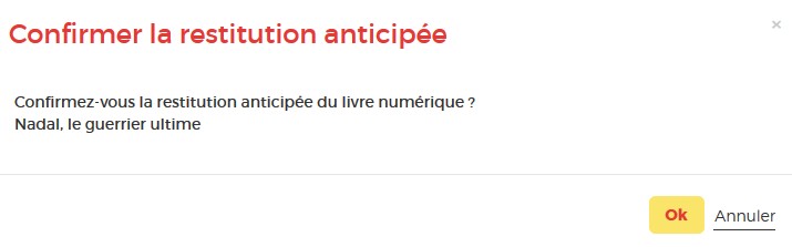 Vos livres sont retournés automatiquement après 31 jours. Vous n'avez pas besoin de le réaliser manuellement. Néanmoins, le nombre d’emprunts simultanés sur un titre étant limité, merci de le retourner pour que quelqu’un d’autre puisse le lire.