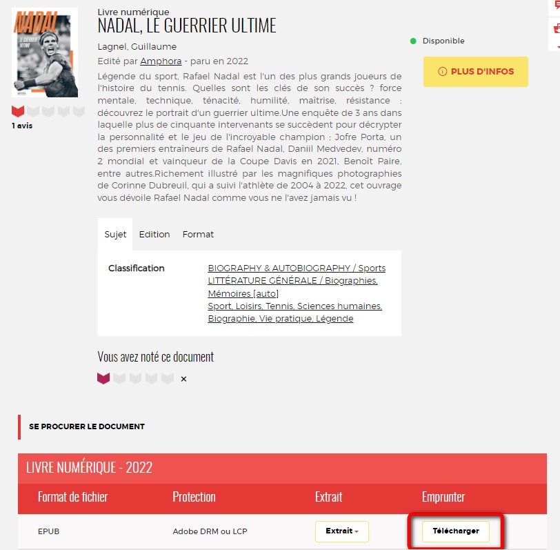 Une fiche détaillée du livre s'affichera. Cliquez sur Télécharger.