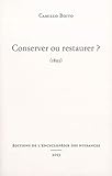 Textes de la 1ère partie précédemment publ. en 2000 aux éd. de l'Imprimeur sous le titre "Conserver ou restaurer : les dilemmes du patrimoine" ; textes de la 2e partie précédemment publ. en 2001 sous le titre "Deux essais sur la restauration et la conservation", dans la revue "Conférence" (n°12)