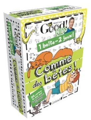Deux jeux pour découvrir avec Dr Good les drôles de spécificités des animaux ! Compter les moutons fait-il dormir ? Quel est le seul animal à grandir dans le ventre de son père ? Combien le poulpe a-t-il de cerveaux ? Au recto, des questions sur les animaux pour tester tes connaissances et au verso, des devinettes pour t'amuser en famille ou avec tes amis !