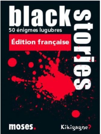 50 Black Stories, 31 crimes, 49 cadavres, 11 meurtriers, 12 suicides et un repas fatal… Les Black Stories sont des énigmes sinistres qui pousseront les joueurs à réfléchir différemment pour les résoudre. Reconstituez chaque situation en posant des questions simples au maître de l'énigme, en étudiant les réponses minutieusement et en laissant votre imagination vous guider. Un jeu terrifiant idéal pour animer une soirée entre amis !