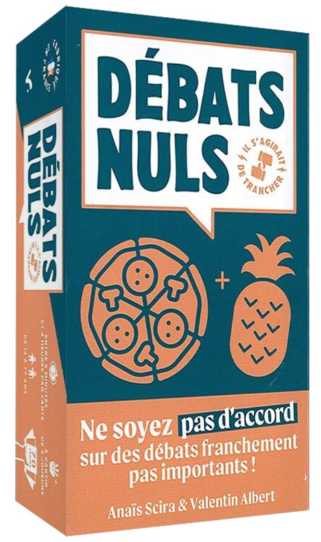Débats Nuls est un jeu de société d’ambiance made in France dédié aux débats futiles. À vous de remporter le débat en argumentant jusqu’à l’absurde pour convaincre l’arbitre.