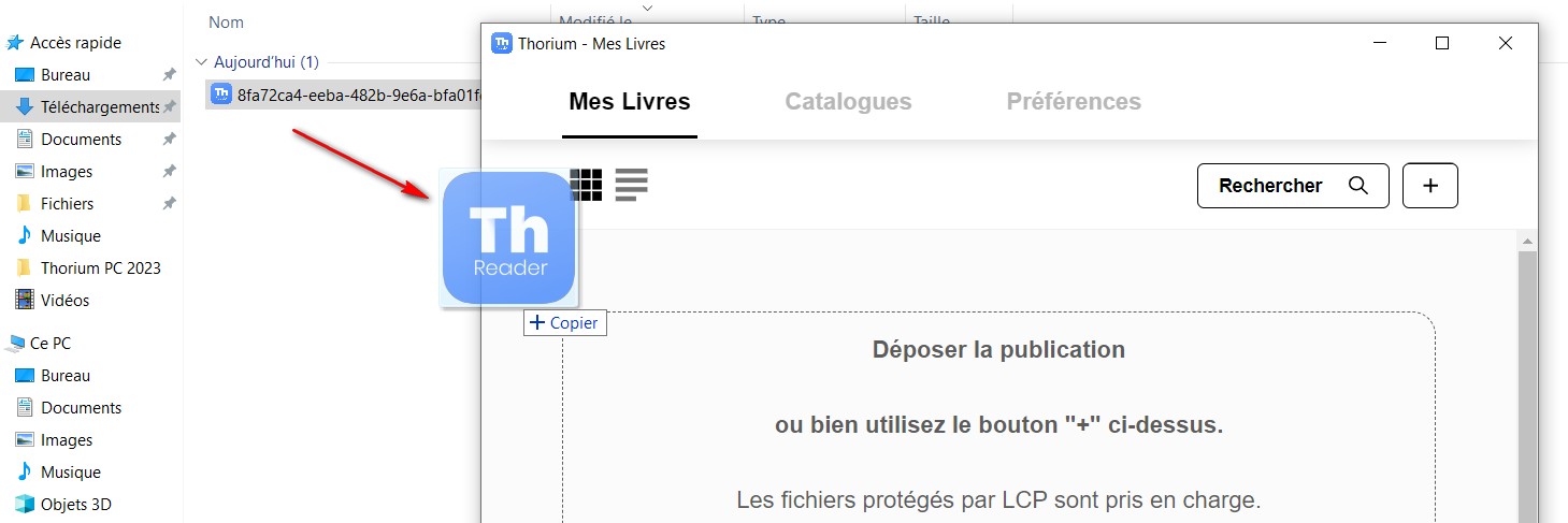 Les ouvrages de la bibliothèque numérique protégés par LCP seront pris en charge par l’application. Revenez dans l’onglet Mes Livres.